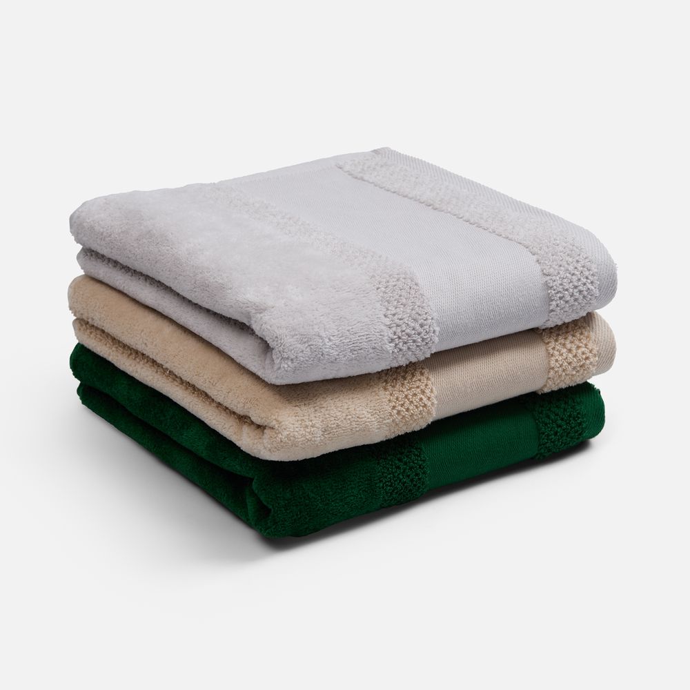 Пышная рельефная структура создает эффект роскошного спа-ухода и быстро впитывает влагу благодаря расположенным пучками петлям, а изящная полоса  из стриженных петель с эффектом велюра добавляет элегантности. Практичный гладкий бордюр станет идеальным холстом для нанесения символики и позволит создать уникальный персональный подарок.