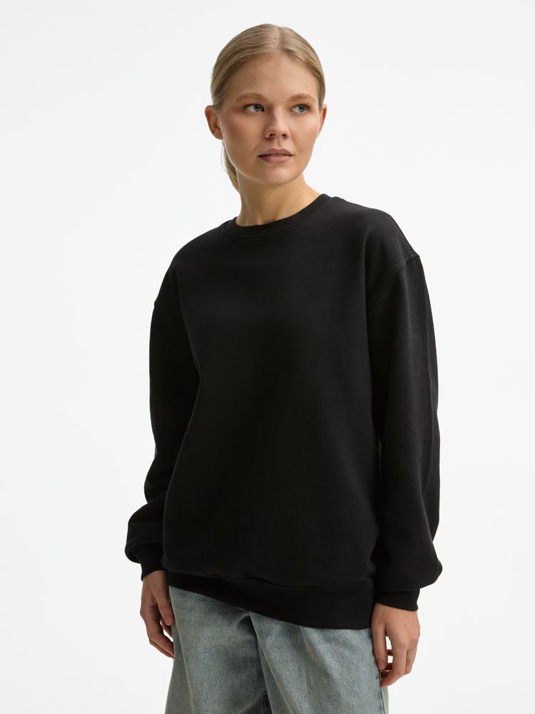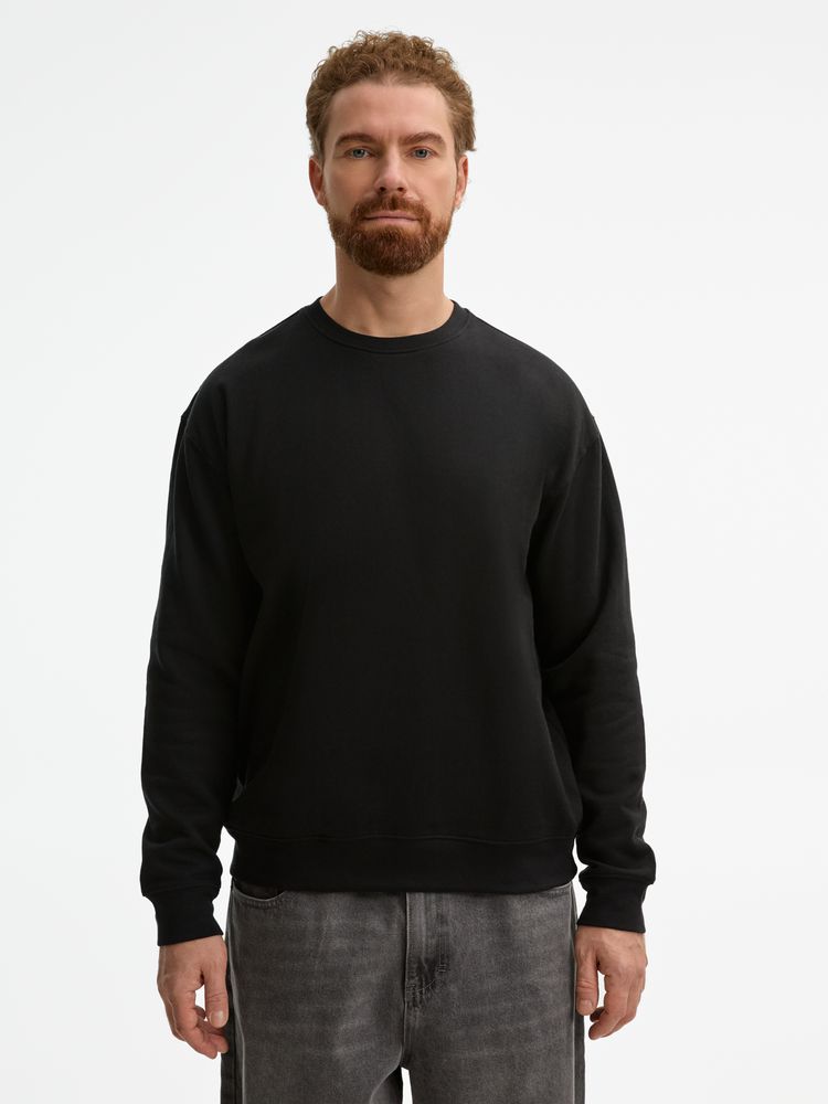 Свитшот унисекс из хлопка и переработанного полиэстера с круглым вырезом и втачным рукавом.